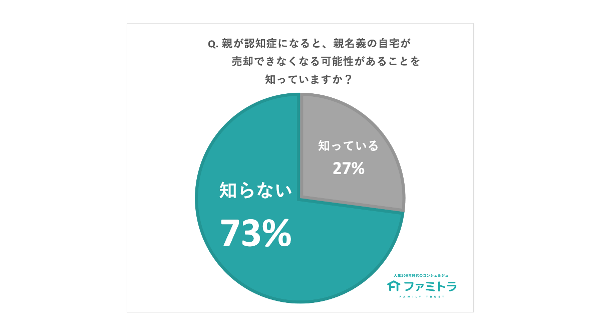 実際にファミトラでも2023年に調査を行った結果が出ております。7割の人が「認知症になると親名義の不動産の売却ができなくなる可能性があることを知らない」にもかかわらず、8割の人が「親の介護施設入居には親の資産をあてにしている」という実態があきらかになりました。
