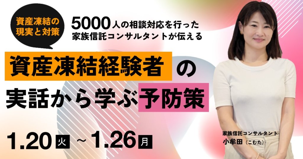 高齢化に伴うお金のリスク(認知症や病気介護によるお金の問題や資産凍結)とお金の管理方法、また相続時の注意点などについて幅広くプロから学べます。