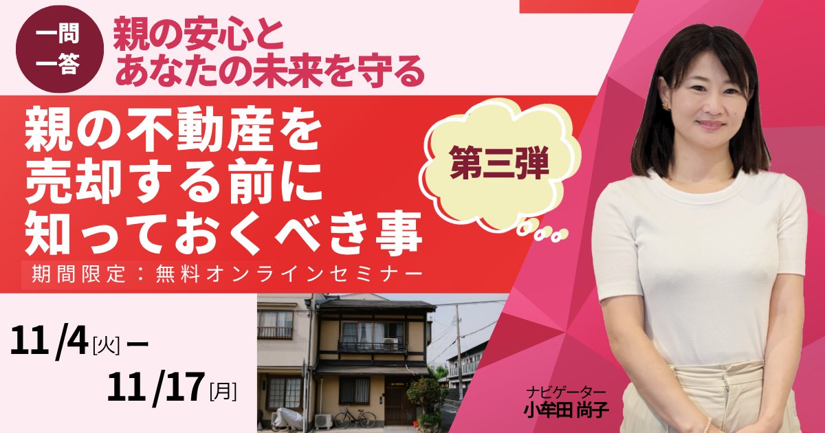 【11/4-11/17開催】【第三弾!! 一問一答】 親の安心とあなたの未来を守る 親の不動産を売却する前に知っておくべき事 オンラインセミナー