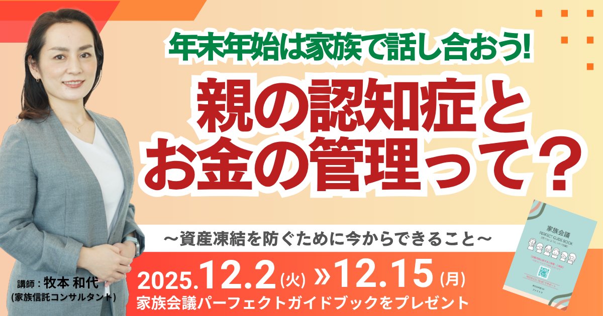 【12/2-12/15開催】長期休暇は家族で話し合おう! 親の認知症とお金の管理って? ~資産凍結を防ぐために今からできること~ オンラインセミナー