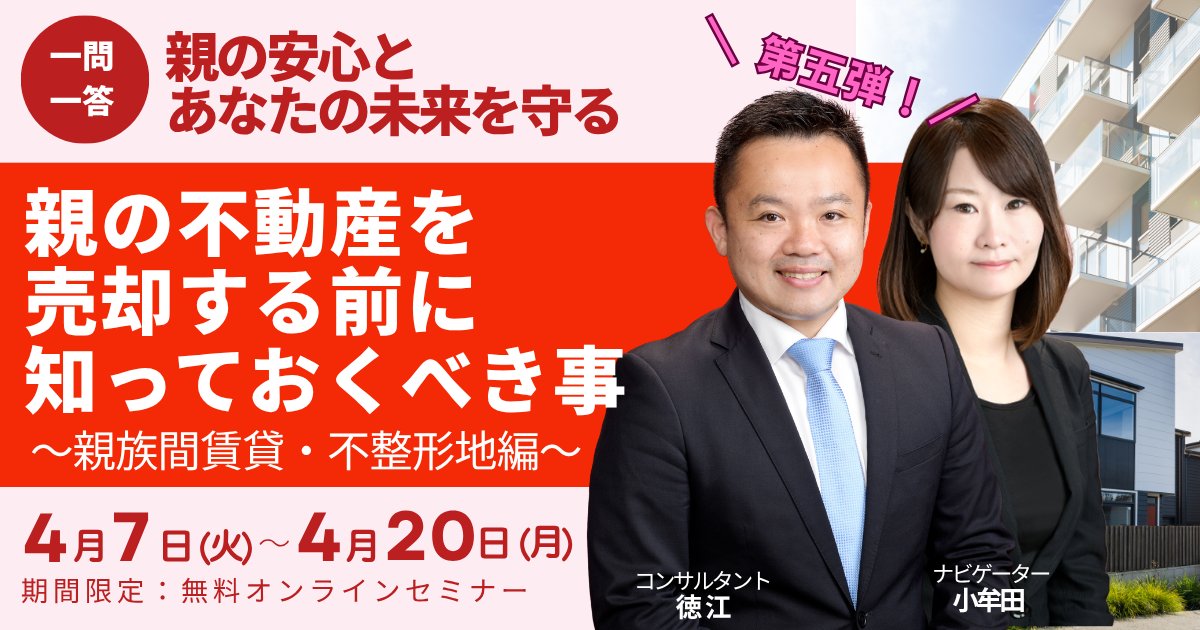 親族間で賃貸していた不動産や、歪な形の土地(不整形地)の売却等、売却活動を失敗しないために具体的な事前知識を得ることで賢い第一歩を踏み出すことができます。